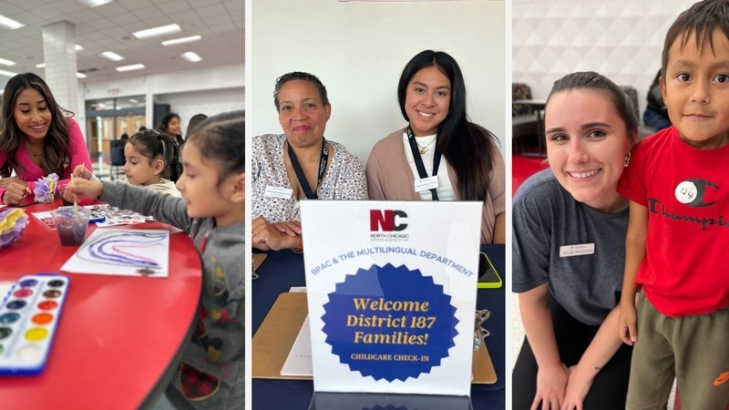 The Department of Multilingual Programs, in collaboration with North Chicago Community Partners (NCCP), hosted the first Bilingual Parent Advisory Committee (BPAC) event at North Chicago Community High School (NCCHS) on September 18, 2023, in the auditorium. Over 160 Spanish-speaking parents gathered for the first of a series of workshops aimed to positively engage and impact multilingual families. While the adults participated in the conference, 116 children participated in Hispanic Heritage Month games and activities in the cafeteria.